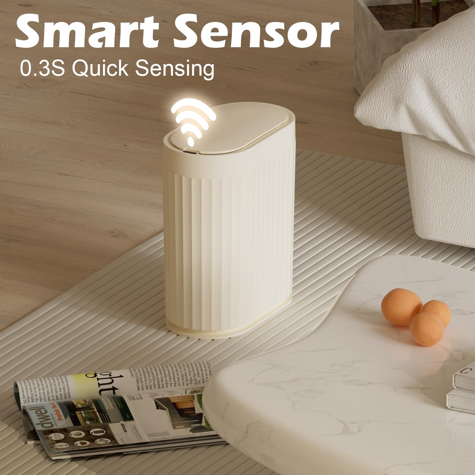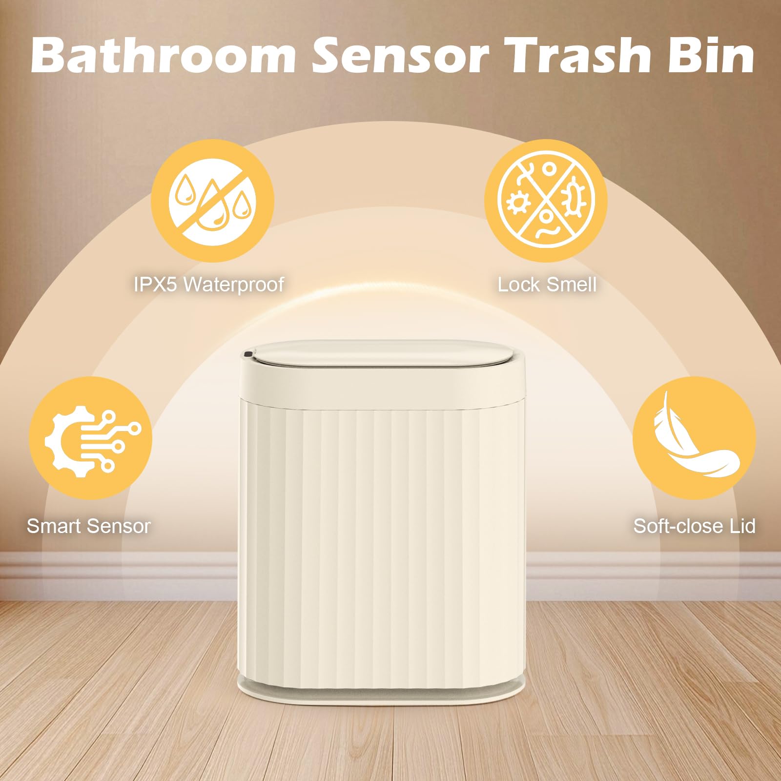 ELPHECO 2 Gallon Sensor Trash Can - 7.5L Waterproof Motion Sensor Trash Can, Automatic Bathroom Trash Bin, Slim Garbage Can, Bathroom, Office, Bedroom, Beige