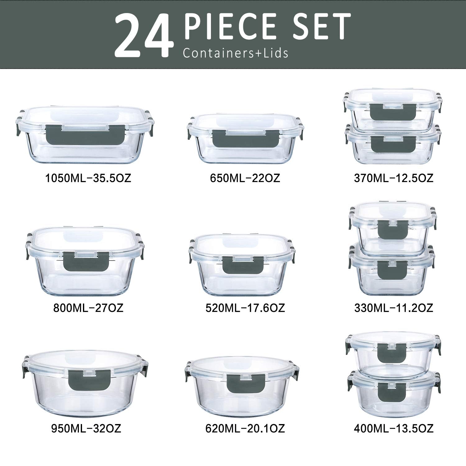 M MCIRCO 24-Piece Glass Food Storage Containers with Upgraded Snap Locking Lids,Glass Meal Prep Containers Set - Airtight Lunch Containers, Microwave, Oven, Freezer and Dishwasher