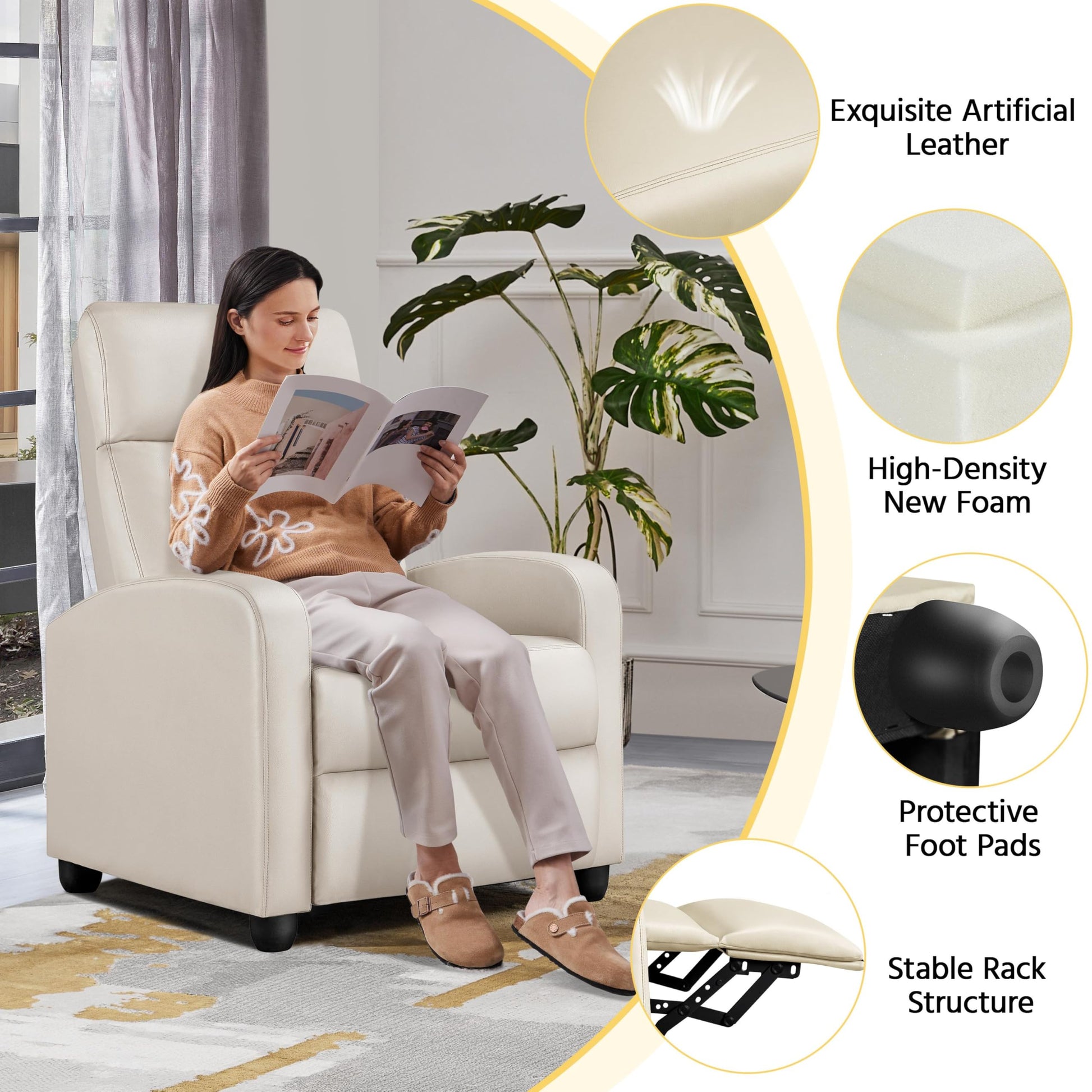 Yaheetech Recliner Chair PU Leather Recliner Sofa Home Theater Seating Adjustable Modern Single Reclining Chair Sofa with Pocket Spring Living Room Bedroom Beige